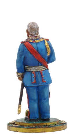 The prince is dressed in the uniform of a field marshal general of the Bavarian Army. He wears the collar and sash of the Royal Order of Saint Hubert, as well as the badge of the Order of the Golden Fleece around his neck. On the regent's chest there are stars of the three Bavarian royal orders: the Order of Saint Hubert, Royal Order of Saint George for the Defense of the Immaculate Conception and Military Order of Max Joseph.
