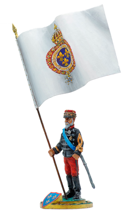 Royal standard of France. White is the colour traditionally associated with the French monarchy, so much so that after the Revolution it came to embody traditional monarchism. This association only dates from the end of the 16th century, although it continues a series of older traditions. It stems from Henry IV's adoption of the white scarf and the famous white plume as the distinctive sign of the royal armies, as opposed to the red or green armies of the Spanish and Lorraine. In fact, he made the colour of the Huguenot party, to which he had belonged before his accession to the throne, the colour of France. His successors were careful to conceal his Protestant origins and to emphasise his Catholic character. After the Wars of Religion and Henry IV's decision to adopt Huguenot white as a rallying colour, the white scarf and flag became the symbols of the Kingdom of France. White was more specifically the colour of military command, with officers wearing brighter scarves so that their men could spot them. Regimental colonels had white flags with white crosses (adapted from their unit's