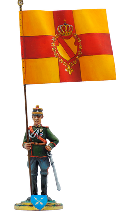 Grand Duke's Standard. Flag adopted 17th December 1891, abolished 1918. Yellow flag with red cross (width 1/3 of flag's height). At the intersection the crowned lesser arms of Baden (yellow a red diagonal stripe), surrounded by the chain of the Order of Berthold.