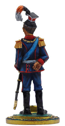 The Leib-Guards Ulansky Regiment of Her Majesty the Empress Alexandra Feodorovna is a Guards cavalry regiment of the Russian Imperial Army. Since 1857 it was part of the 2nd Guards Cavalry Division. It distinguished itself in battles with Napoleon's army at Austerlitz in 1805 and at Friedland in 1807. The regiment's seniority - 16.05.1651, regimental holiday - on the day of the Ascension of the Lord. Dislocation - Novy Peterhof, St. Petersburg province. Honours - St George's Standard with the inscription ‘For the capture of the enemy banner at Krasnoye and for distinction in the defeat and expulsion of the enemy from Russia in 1812’. Granted on 13 April 1813, new standard - 27 June 1851. On 27 June 1851 the St. Andrew's ribbon was granted in connection with the celebration of the 200th anniversary of the regiment. Since 1884 it has not been in service. 22 Trumpets of St. George with the inscription ‘of the L.-Gv. Ulansky regiment, for excellent feats performed in the memorable campaign safely ended in 1814’. Granted on 30 August 1814. Badges on headdresses with the inscription ‘For Telish on 16 October and the Balkans on 18 December 1877’. Awarded on 17 April 1878.